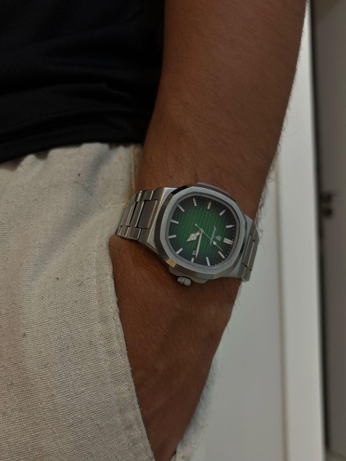 Com 40mm de caixa e pulseira ajustável que complementa o design o relógio é perfeito para diferentes larguras de pulsos.